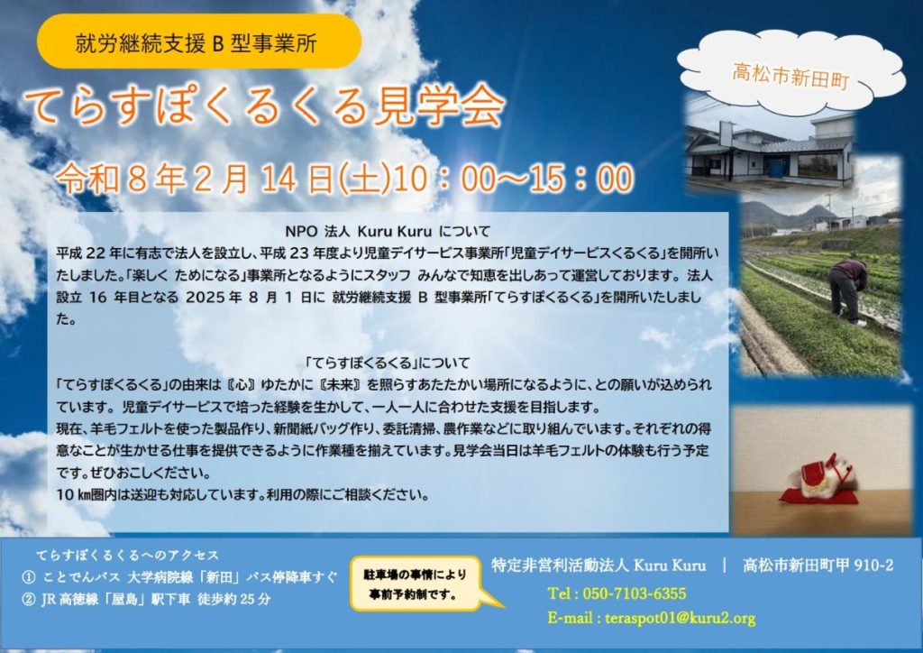 私どもNPO法人Kuru Kuruが運営する就労継続支援B型事業所「てらすぽくるくる」は、2月に開所から半年を迎えます。そして・・・