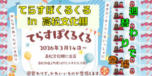 てらすぽくるくる in 高松東マーケット 2026.2.28 & 3.1 2026 2/26 てらすぽくるくる 2026年2月26日 この投稿をInstagramで見る てらすぽくるくる*高松*B型就労支援(@teraspot.kuru2)がシェアした投稿 てらすぽくるくる URLをコピーしました! URLをコピーしました! 2026.2.7(土) バレンタインマルシェ に参加します!! てらすぽくるくる in ウォームはあと 春のマルシェ 2026.3.7(土) 関連記事 3/14~ 週替わりで かわいいものが登場します!! てらすぽくるくる in 高松文化棚 2026年3月10日 てらすぽくるくる in ウォームはあと 春のマルシェ 2026.3.7(土) 2026年2月26日 2026.2.7(土) バレンタインマルシェ に参加します!! 2026年1月22日 てらすぽくるくる 見学会 開催!! 令和8年2月14日(土) 2026年1月20日 羊毛フェルト ~なかまがふえました~ 2026年1月20日 てらすぽくるくる in イオン高松東マーケット 2026.1.24 2026年1月20日 「てらすぽくるくる 」の情報を追加しました!! 2025年8月21日